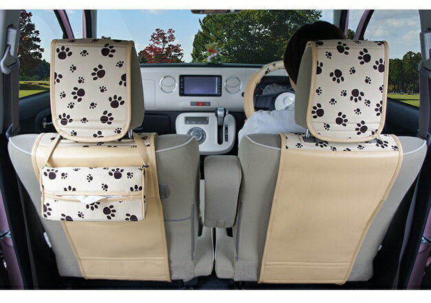 ティッシュボックスカバー 足あとアイボリー♪( ティッシュ/ティッシュケース/ティッシュカバー/カーシートカバー/お揃い/可愛い/便利/レザー/カーグッズ/カー用品/猫/犬/にくきゅう/肉球 インテリア 車内 おしゃれ) 内装パーツ