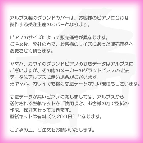 グランドピアノカバーは、同一サイズでもメーカー・機種・年式によりカーブが異なります。