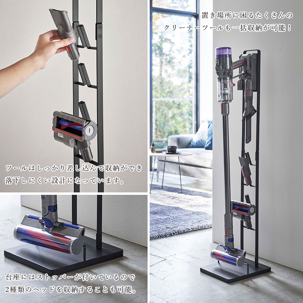 置き場所に困るたくさんのクリーナーツールも一括で収納することができ、ツールはしっかり差し込んで収納ができ、落下しにくい設計になっています。