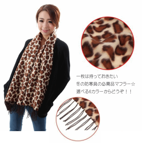 マフラー ストール チェック柄 レオパード 豹柄 可愛い フリンジ 防寒 選べる6カラー レディースおうちコーデ (アパレル)
