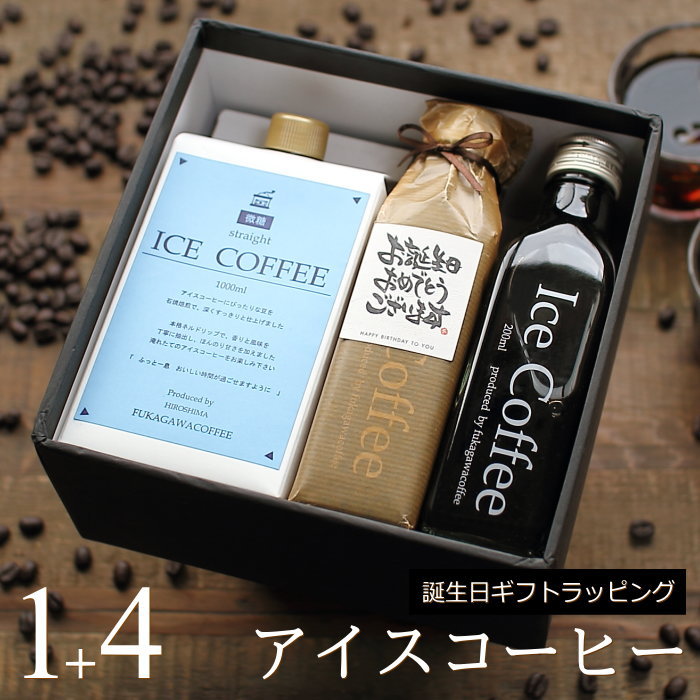 【誕生日 プレゼント】 コーヒー ギフト アイスコーヒー 無糖 微糖 セット(微糖・1000ml×1本、無糖・200ml×4本) 高級 コーヒーギフト プレゼント かわいい おしゃれ ラッピング ボトルラッピング ちょっとした 品 父 母 男性 女性 深川珈琲 広島 誕・B1+4