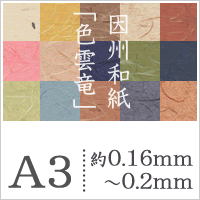 因州和紙 色の種類 因州和紙 「色雲竜」 色付きの地紙に同色系の繊維を散らし、裏面に白い和紙を漉き合わせた和紙です。
